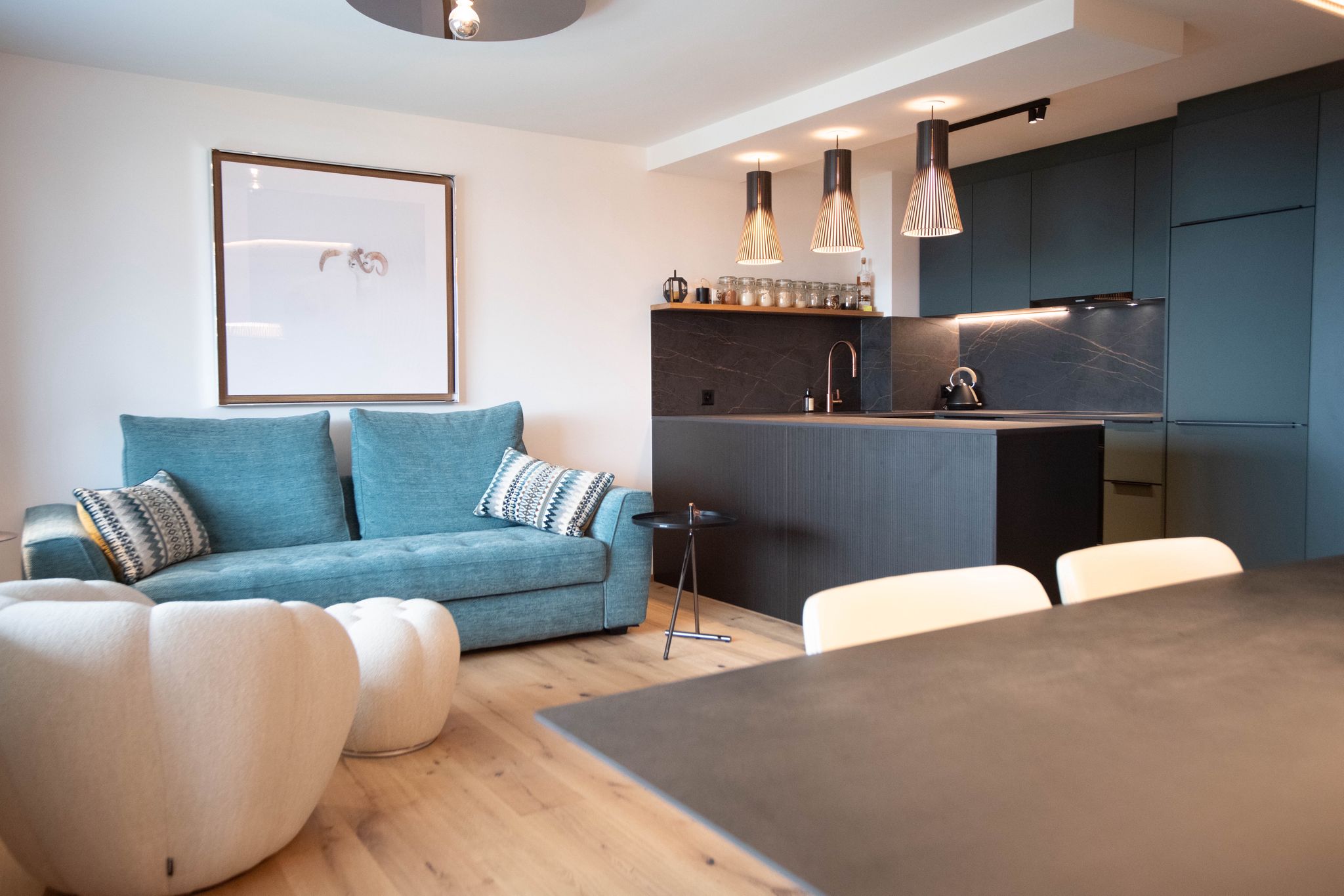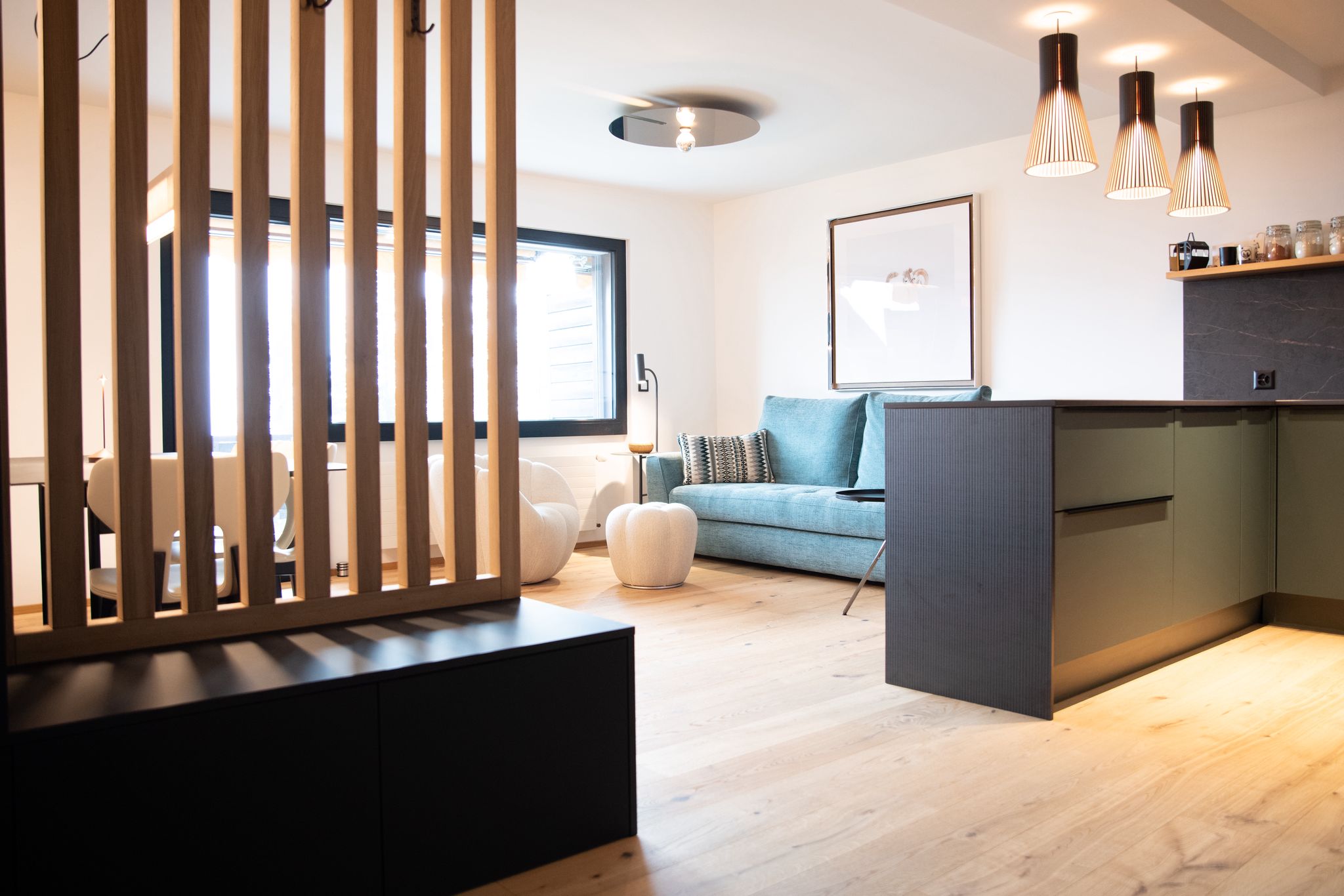 Cet appartement est très chaleureux et fonctionnel, de style chalet.