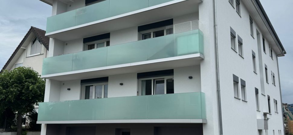 Appartement d’environ 80 m2 avec grand blacon et place de parc, au centre de Gland mais sans nuisances.